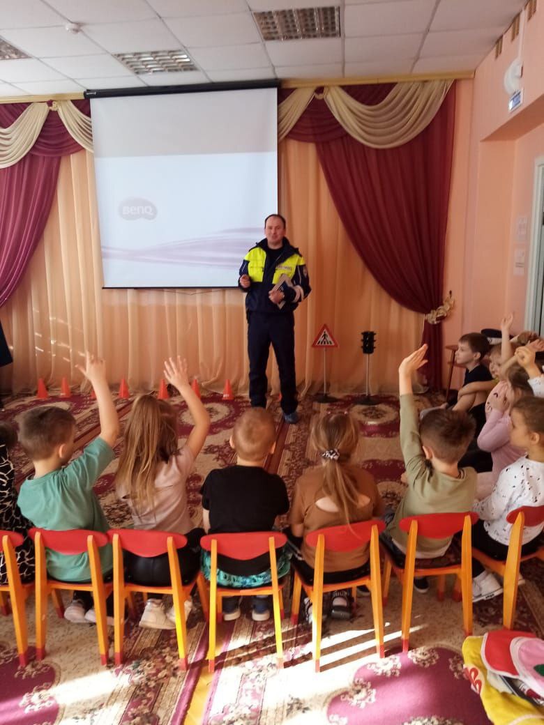 Инспектор доступно и интересно объяснил детям, как вести себя на улице, чтобы быть в безопасности. Все с интересом слушали, активно отвечали на вопросы и делились своими знаниями! ????????